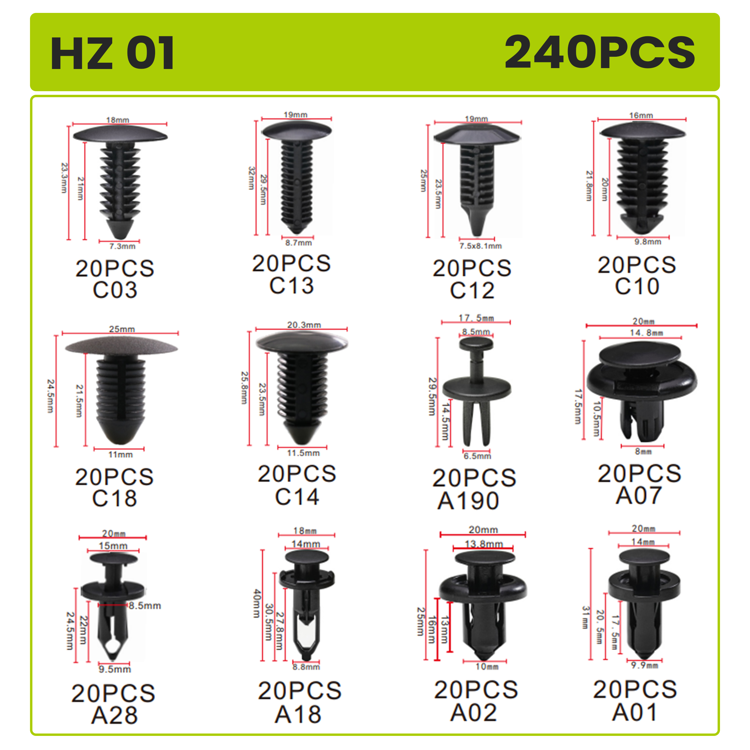 240 PCS Bumper Clips & Plastic Rivets Push Pin Retainer Kit – Includes 12 Sizes & 5 Fastener Removers for GM, Ford, Toyota, Honda, Chrysler, Mercedes, BMW, Acura, and Many More